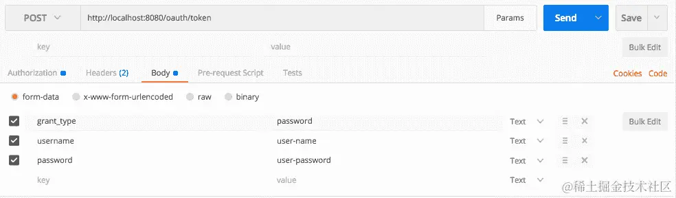 让我们使用 Postman 向前述服务发送一个GET请求,网址为http://localhost:8080/users/dummy-service。响应如下所示的代码: