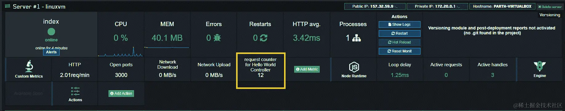 这些依赖项将确保我们能够监控 Node.js 引擎,并能够从服务中收集响应时间。