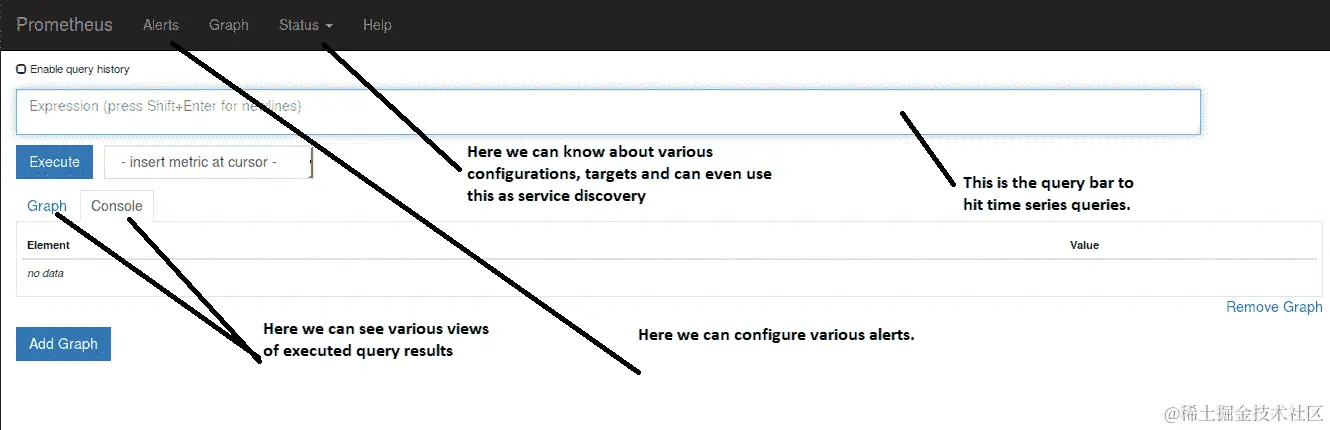 - 您的 Prometheus 应该已经启动并运行,并且您应该看到以下屏幕: