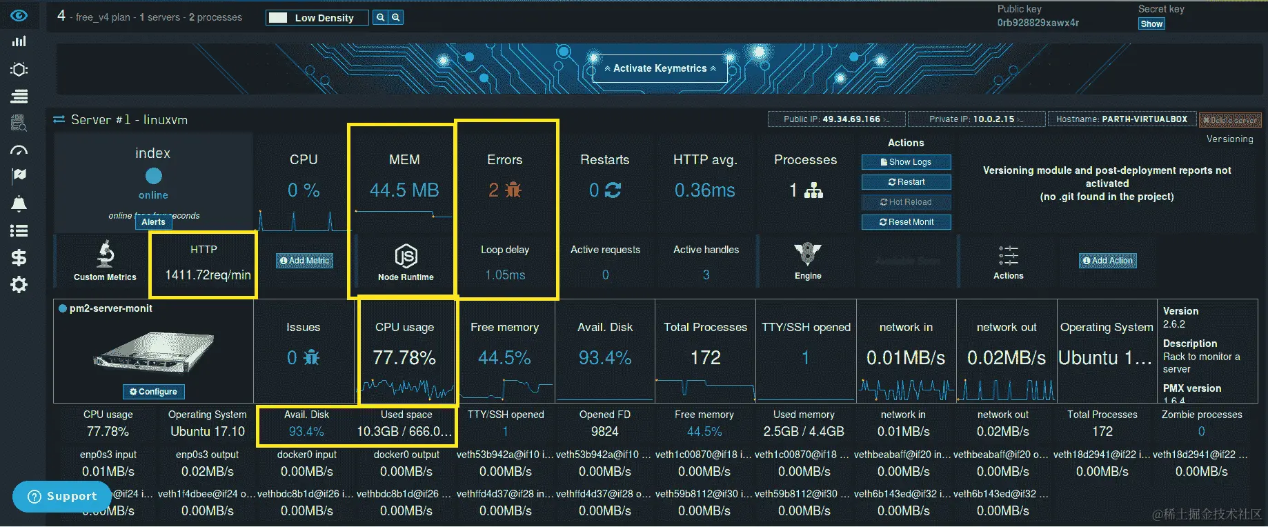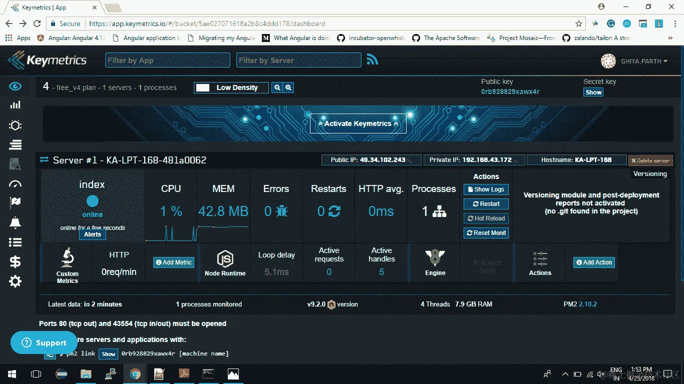 它有一个易于解释的仪表板,并且具有所有重要的关键指标(你打赌,PM2 是我们唯一的选择)