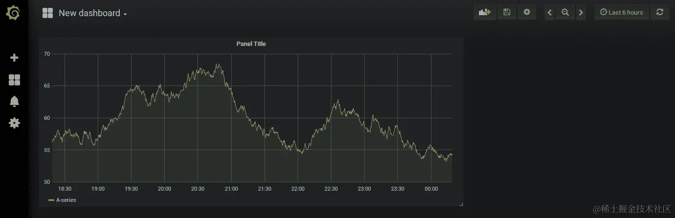 - 一旦配置了数据源,您可以通过 GUI 工具自定义图形或其他内容,并设计自己的自定义仪表板。它将如下所示: