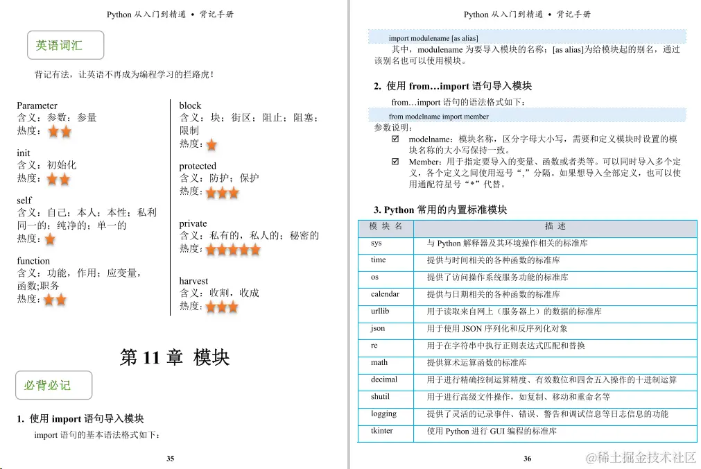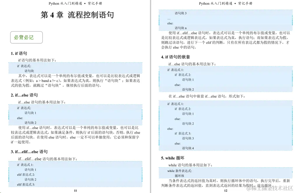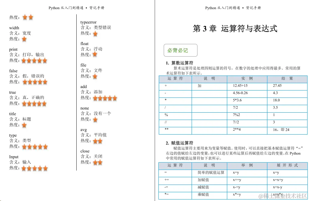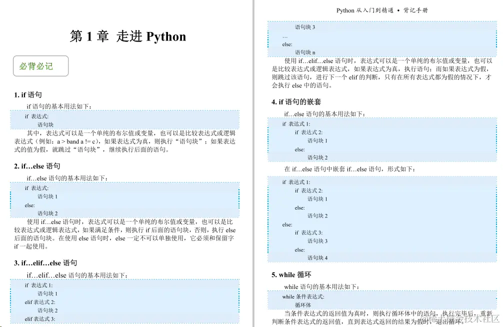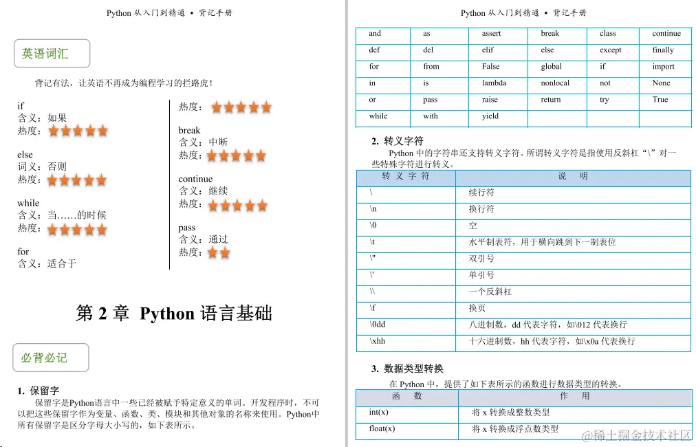 今天给小伙伴们带来的是一份足够精炼,但又浅显易懂的python教程《python背记手册》,这份教程主要主要分为21个章节,前十章是讲Python的基础知识,后十章主要介绍Pvthon的一些实操项目