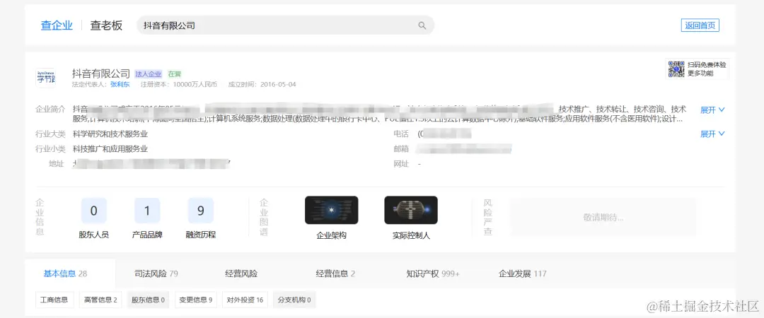 (1)查企业,比如使用下方推荐的字节跳动公司查询企业信息试试,和其他软件一样基本信息都能查询到