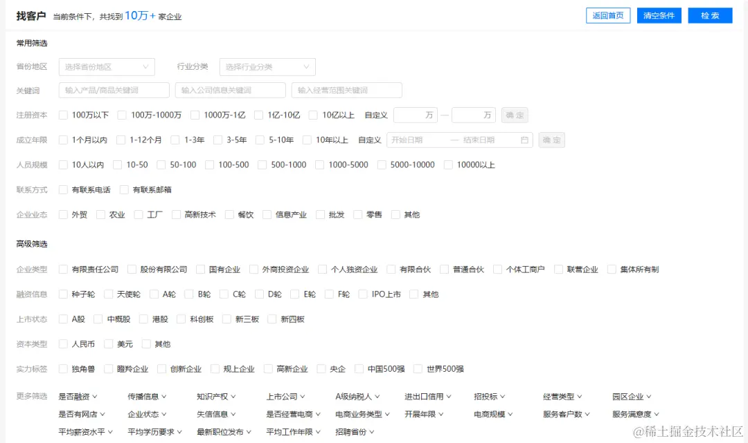 (3)找客户,除了企业、老板信息免费查询,还可以根据多种不同条件不同角度筛选,找到你想查询到的相关企业客户