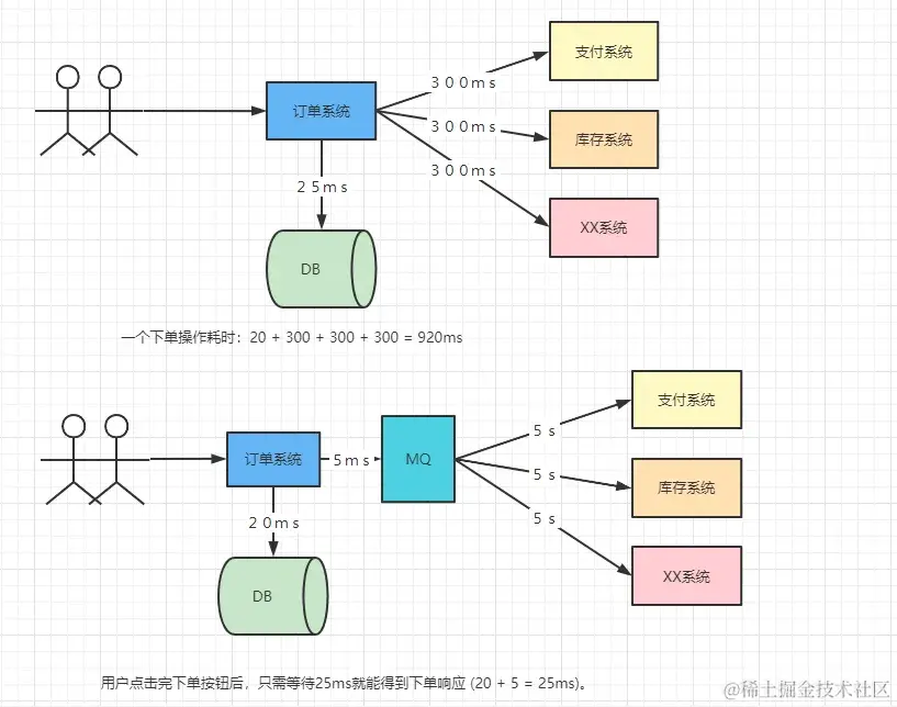 2)异步提速: 提升用户体验和系统吞吐量(单位时间内处理请求的数目)。