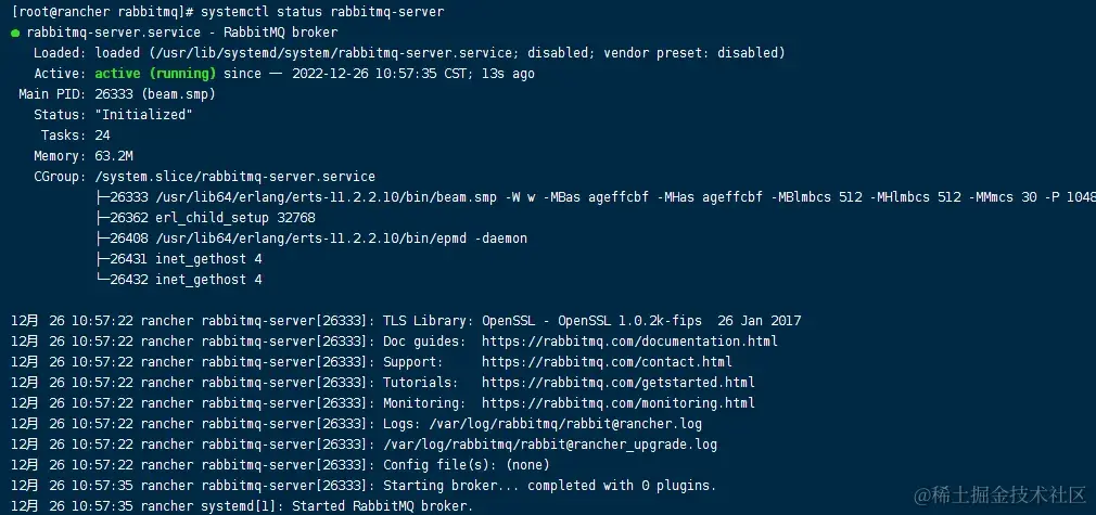 [root@rancher rabbitmq]# systemctl start rabbitmq-server