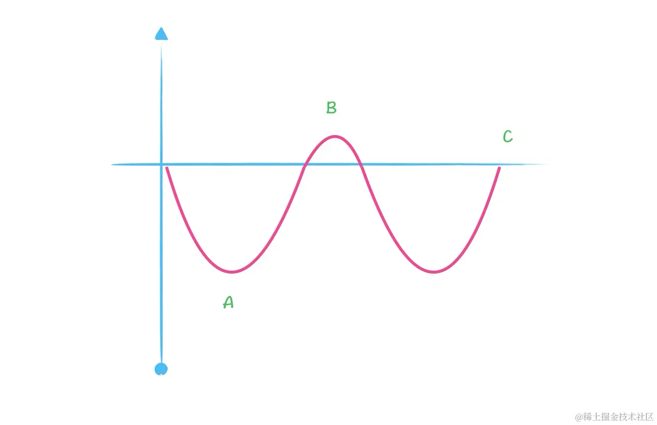 假设C为地面,A为地面挖坑的深度,如果A的深度为0,那么B的高度也会为0,A挖得越深,B也就越高。山之所以高不见得是山本身的原因,有可能是海太深的原因,同理,海之所以深,也有可能是山太高的原因。至此,基本可以说明,事物存在本身有一种此消彼长的平衡,这种平衡一旦遭到破坏,那么事物就会消亡,比如将深坑A重新填满,那么B的高度就会消失,然而事物的本质并不会消失,而是转化成另外一种平衡,AB消失,曲线消失,但是会变成直线C这样另一种平衡的状态。
