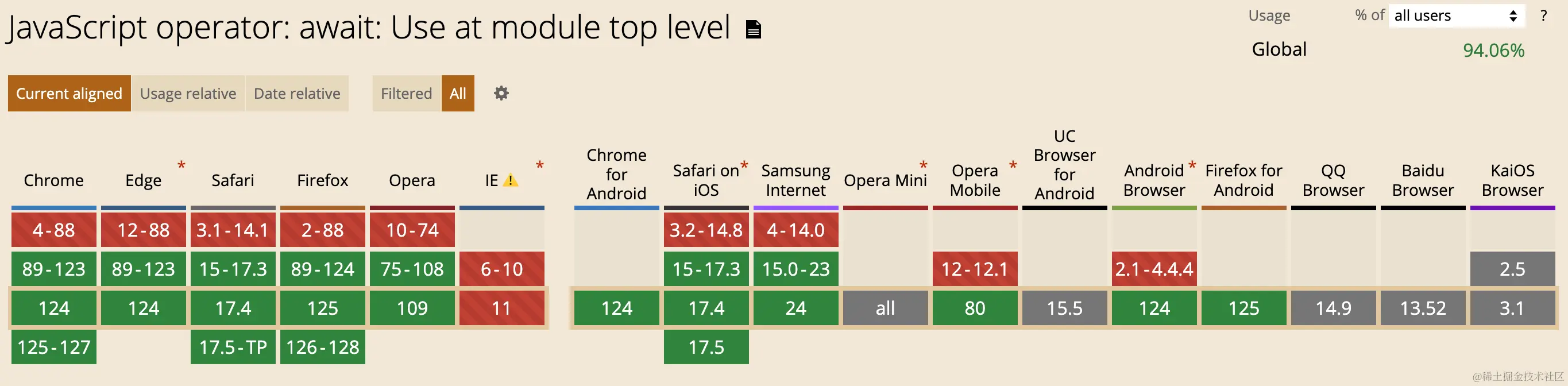 由于IndexedDB的API是异步的,如果要使用async/await的话,就要注意一下兼容性了。在module顶层使用await的话,ios15才支持。