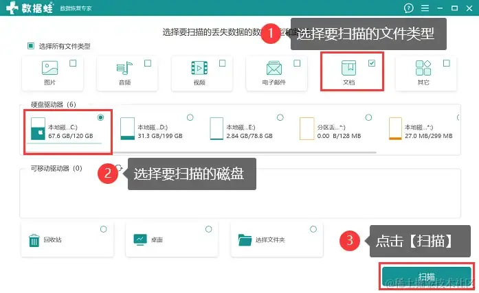 如果我们在清理文件时发现误删了重要文件怎么办?建议大家尝试使用专业的数据恢复软件,比如数据蛙恢复专家。这款软件不仅拥有简单易用的特点,成功恢复数据的概率也比较大。并且软件支持免费扫描,用户可以先尝试对所需恢复的文件进行扫描。以下是软件操作步骤。