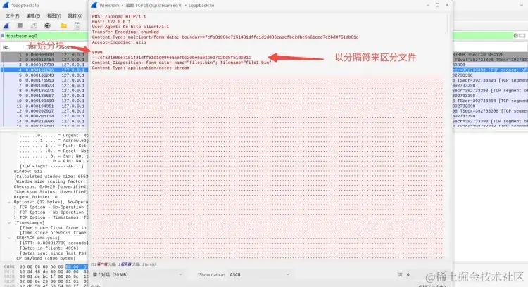 下面,我通过执行客户端代码向服务端发起HTTP请求。通过抓包网卡方式,将我们本次请求中的 multipart/form-data