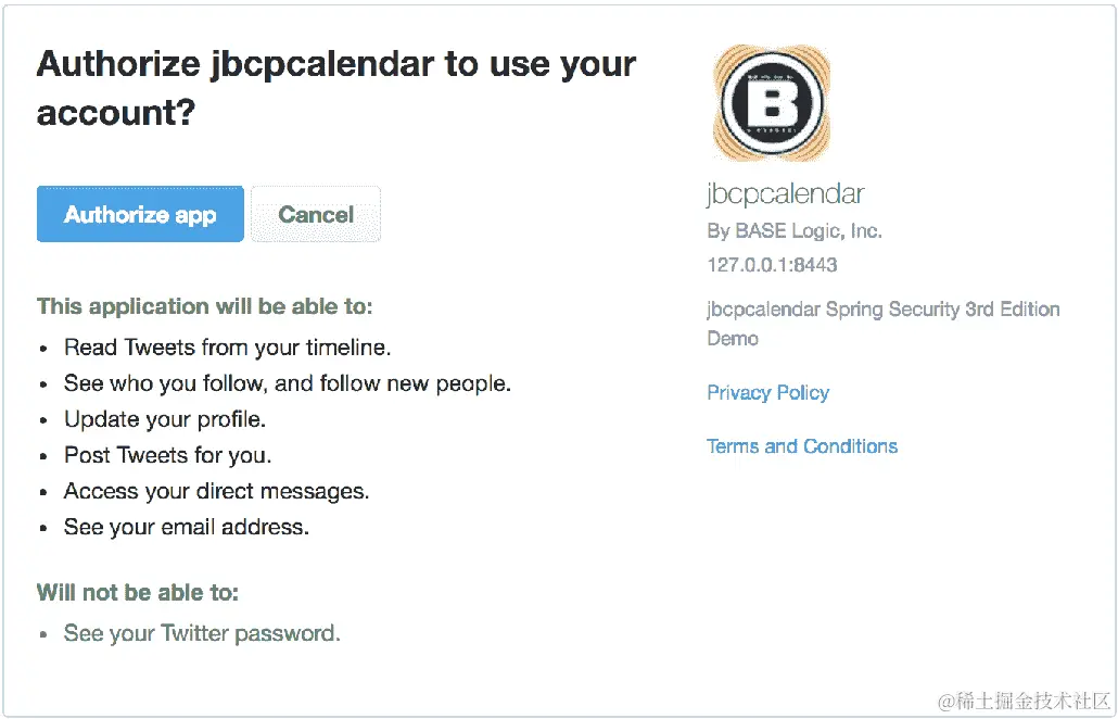 重新启动 CAS 服务器和 JBCP 日历应用程序。然后你可以访问https://localhost:8443,并看到我们的日历应用程序可以从 CAS 响应中获取UserDetails。