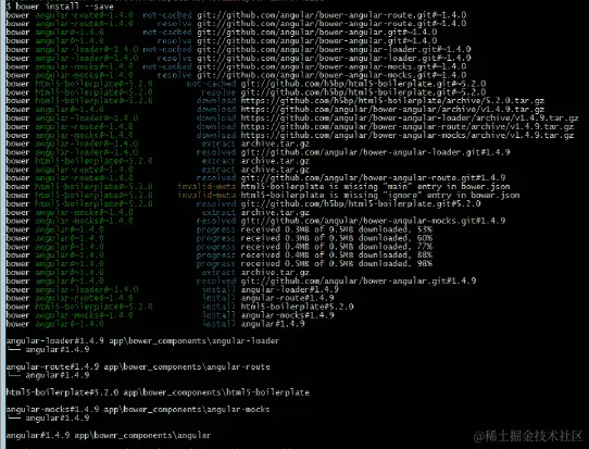 - 示例输出 - bower install --s