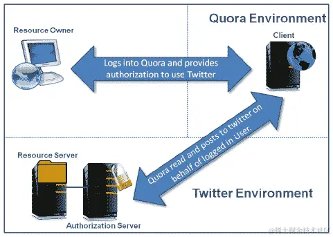 以 Quora 使用 Twitter 登录为例,Twitter 用户是资源所有者。资源所有者是拥有要共享的受保护资源(例如,用户处理、推文等)的实体。这个实体可以是应用程序或个人。我们称这个实体为资源所有者,因为它只能授予对其资源的访问权限。规范还定义,当资源所有者是个人时,它们被称为最终用户。