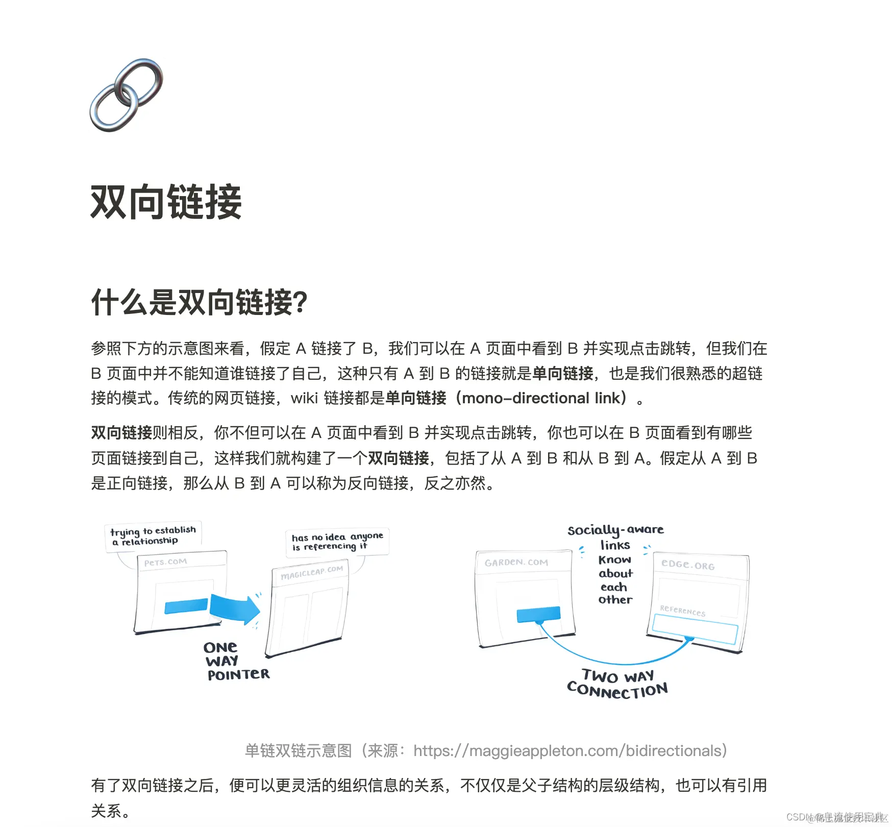 - 链接思维:通过双向链接功能,建立知识之间的连接。