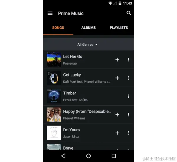 上图中的交互动效来自Amazon Prime Music、界面中出现了两个元素(加号 icon & 对勾 icon)的动画,虽然看起来非常简单、但是包含着极为丰富的变化。