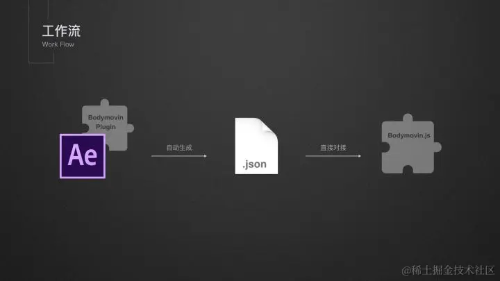目前,有像 Lottie、Keyframes 等开源库,通过 AE 插件,将在 AE 中设计的动效自动导出为 前端可用的动效文件,前端只需要在项目中打入对应的开源库,就可以免去对接交流的苦恼。