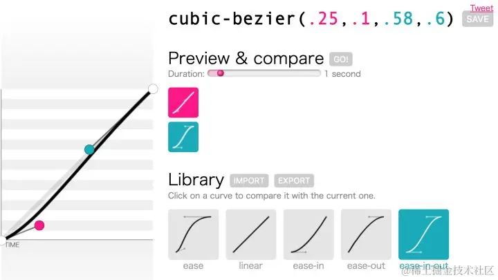 现在有许多工具可以方便设计师去调曲线、实时预览效果、并且显示成前端需要的格式。在这里推荐两个: