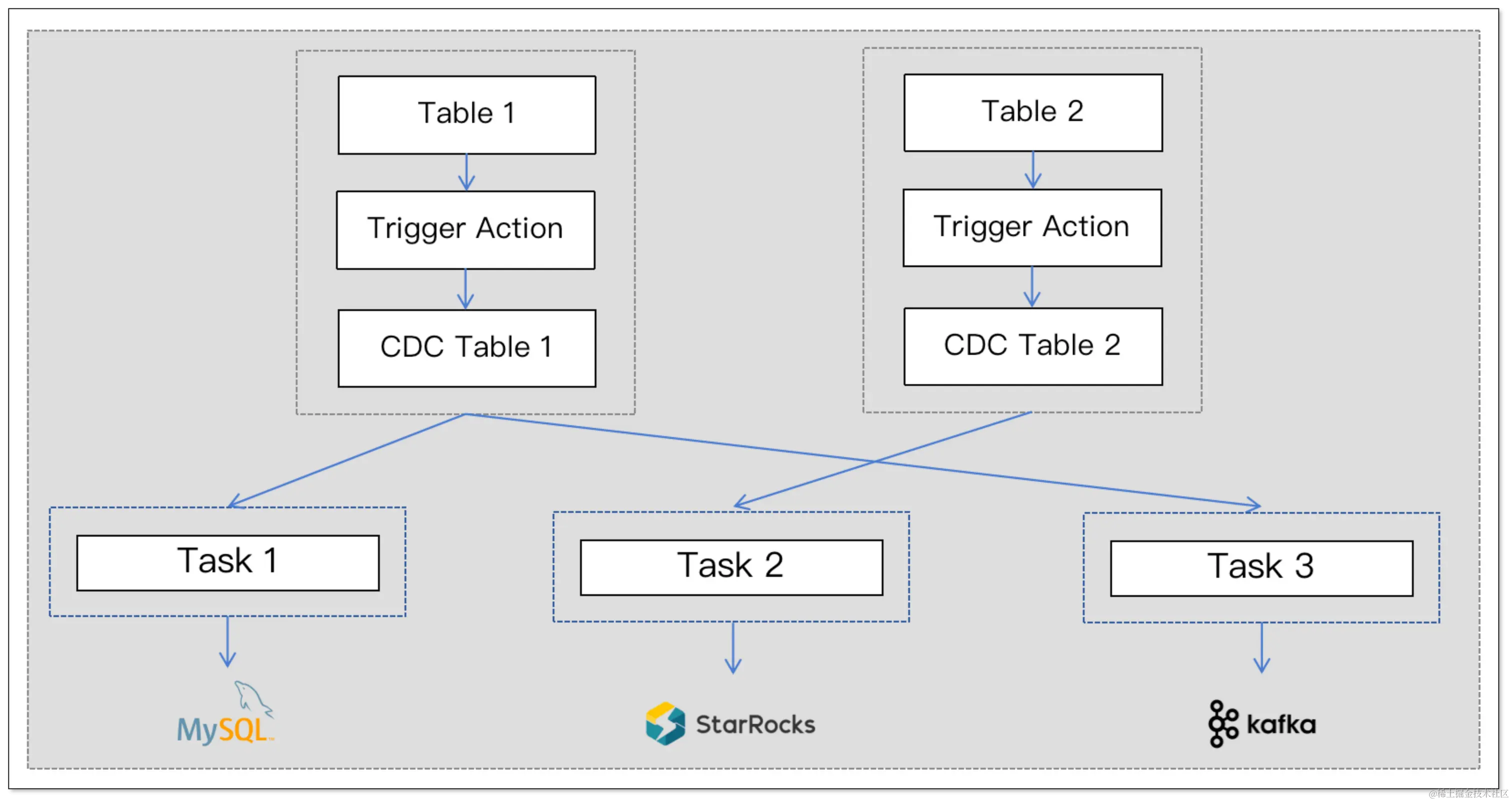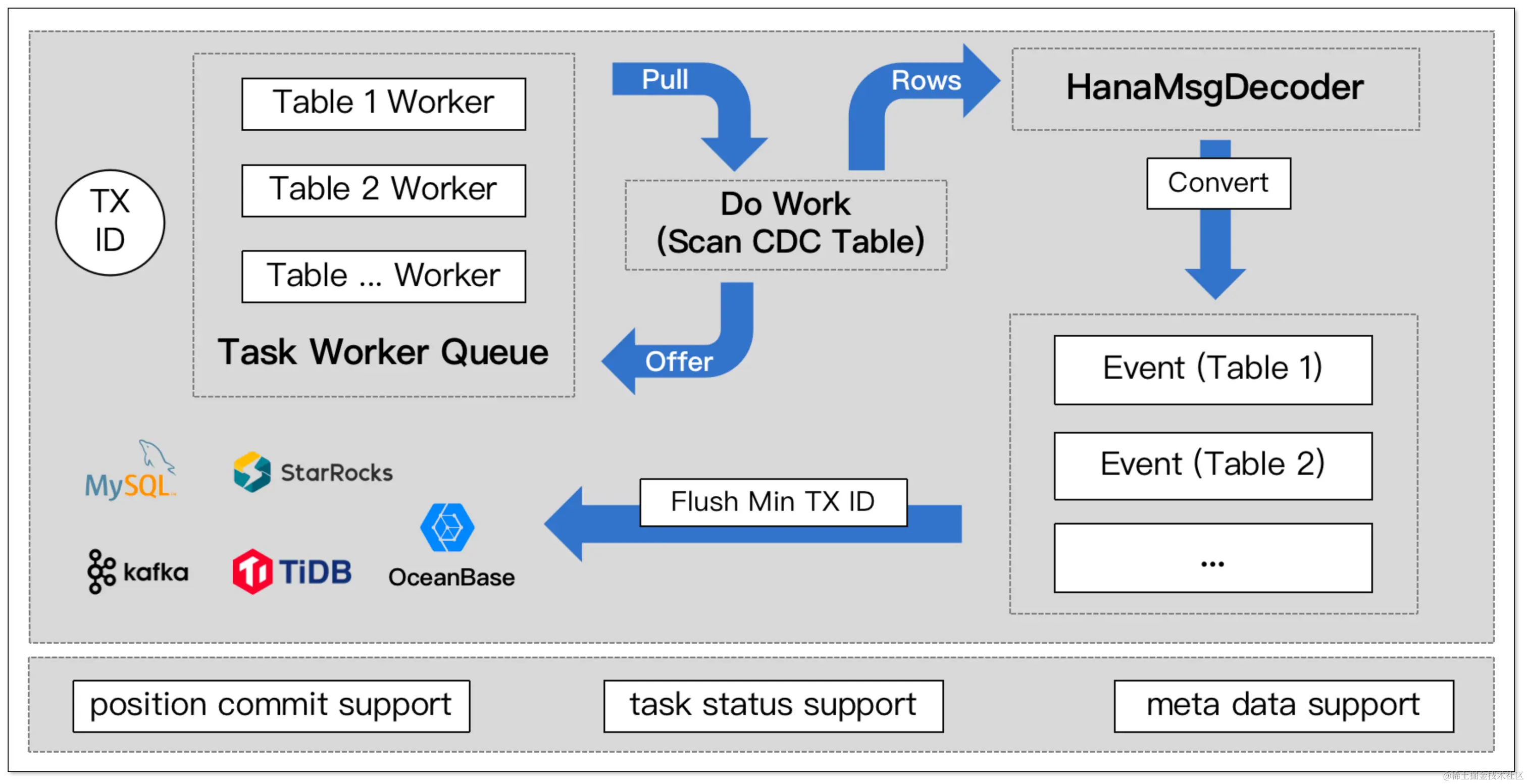 - 每个 Table Worker 根据位点消费对应的 CDC 表数据。
