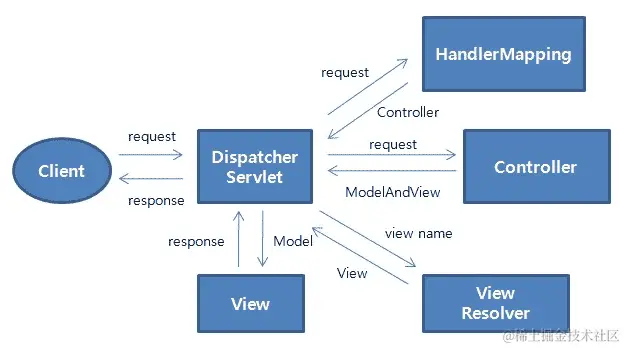 以下图表说明了 Spring MVC 架构中前面组件的流程: