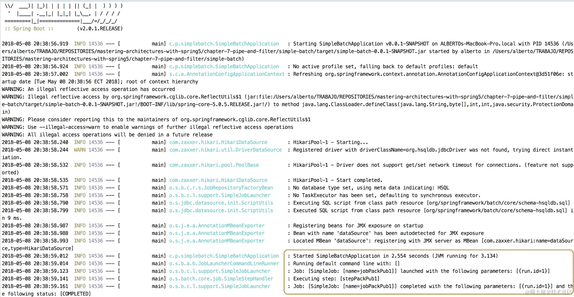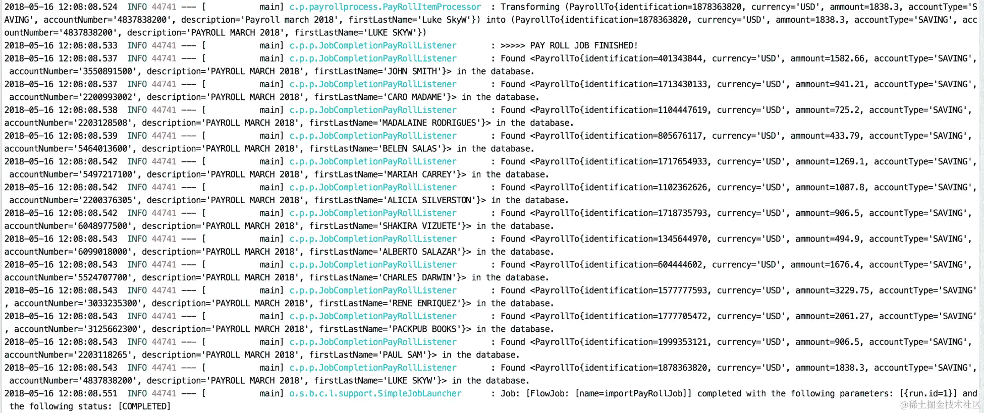 我们还可以通过监听器来验证我们的流程,该监听器实现为JobExecutionListenerSupport,打印存储在数据库中的结果: