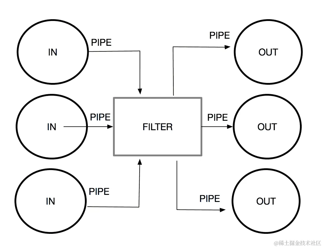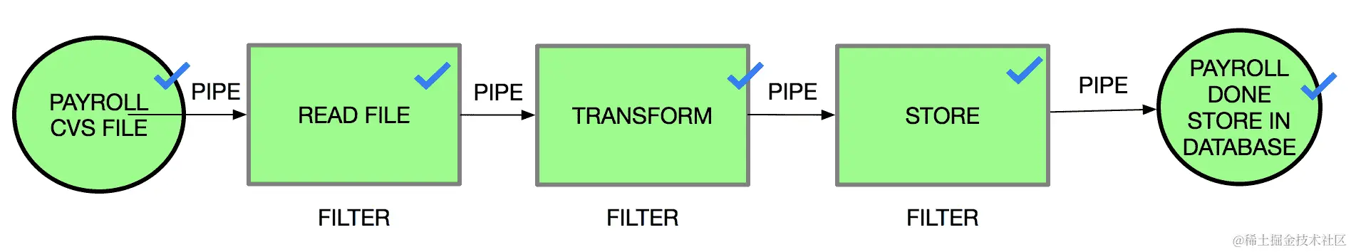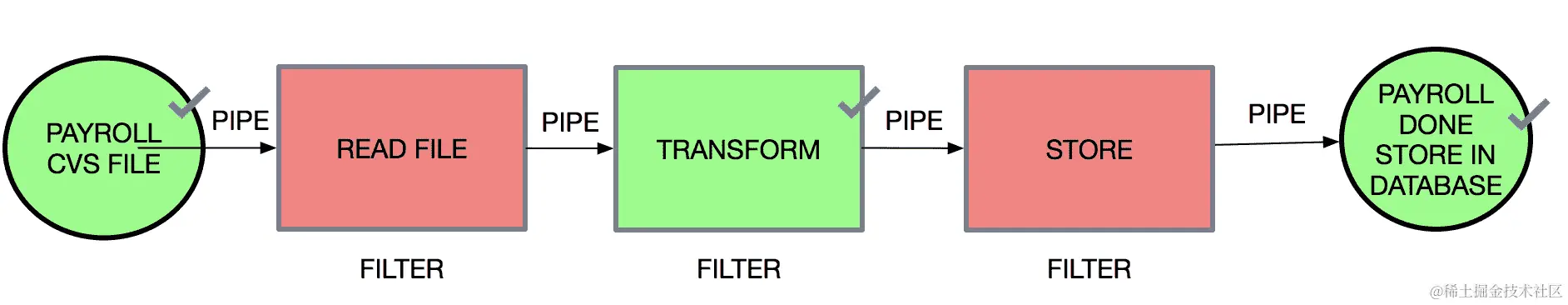 我们现在已经实现了我们计划的所有管道和过滤器,如下图所示: