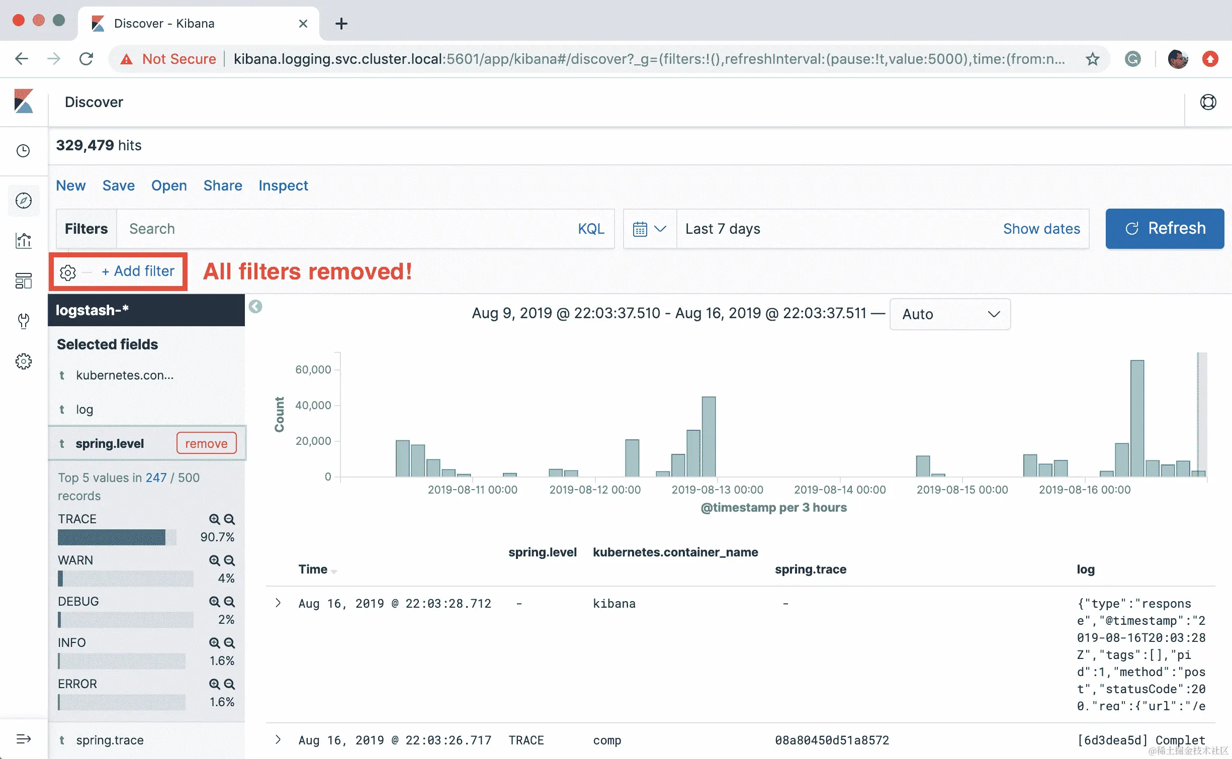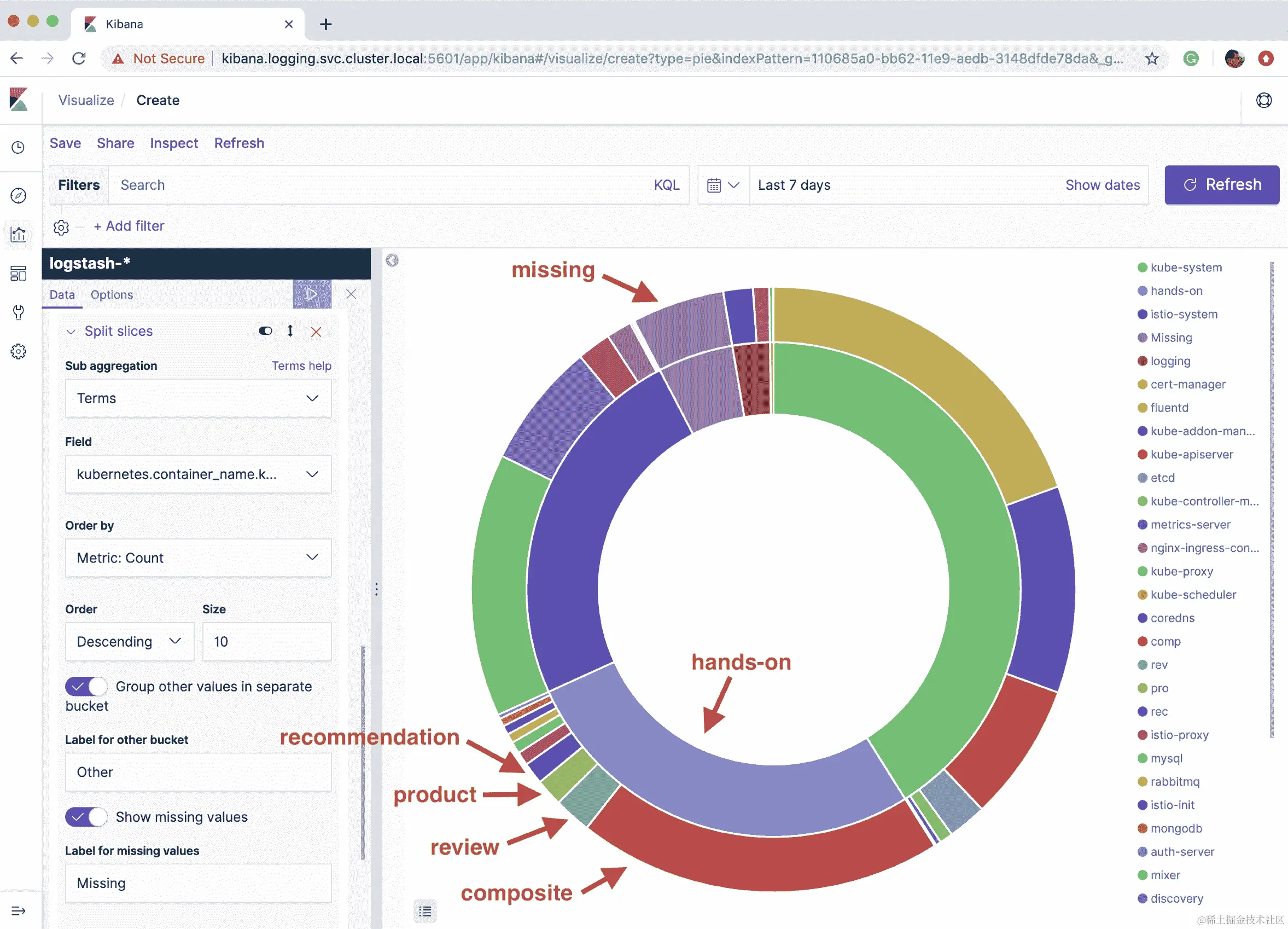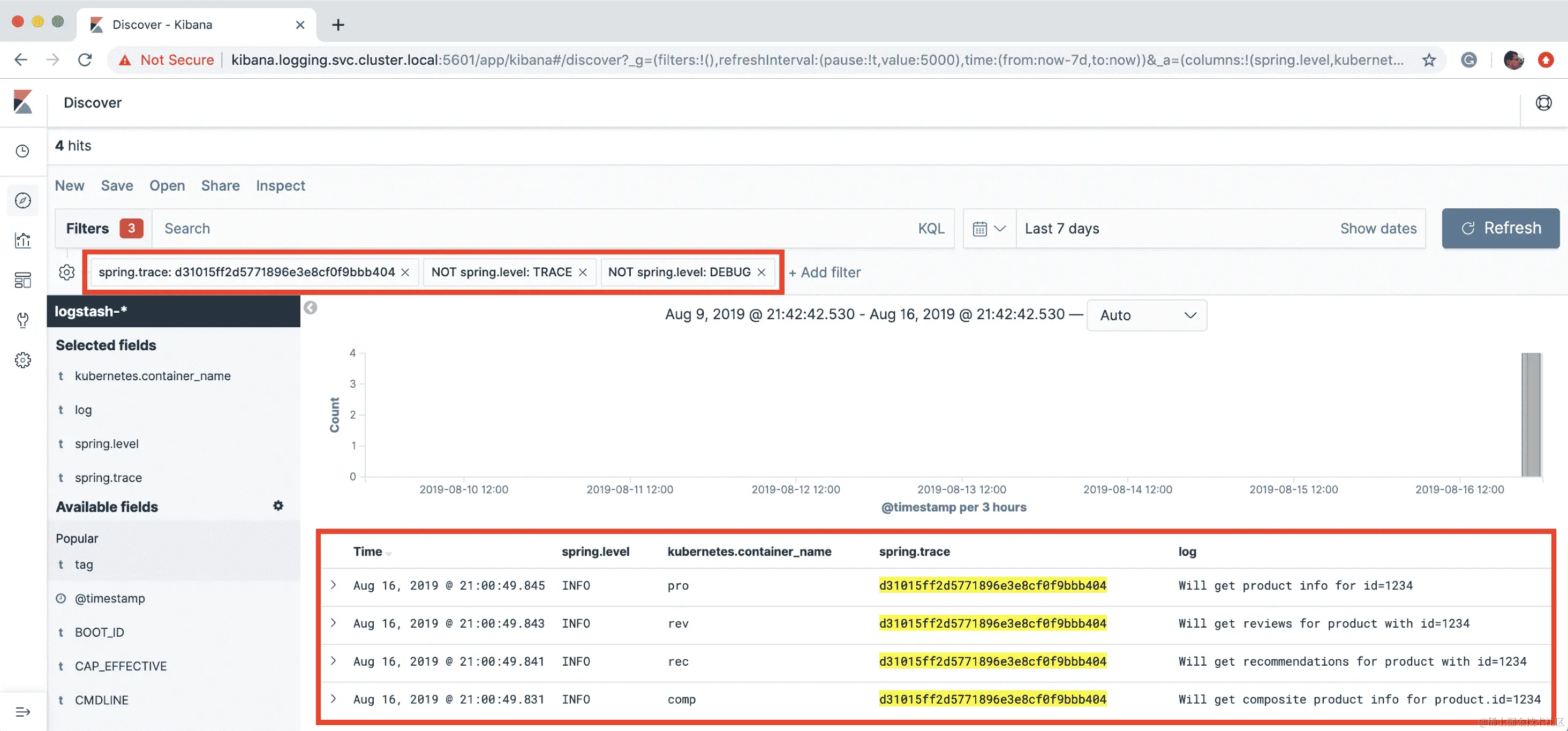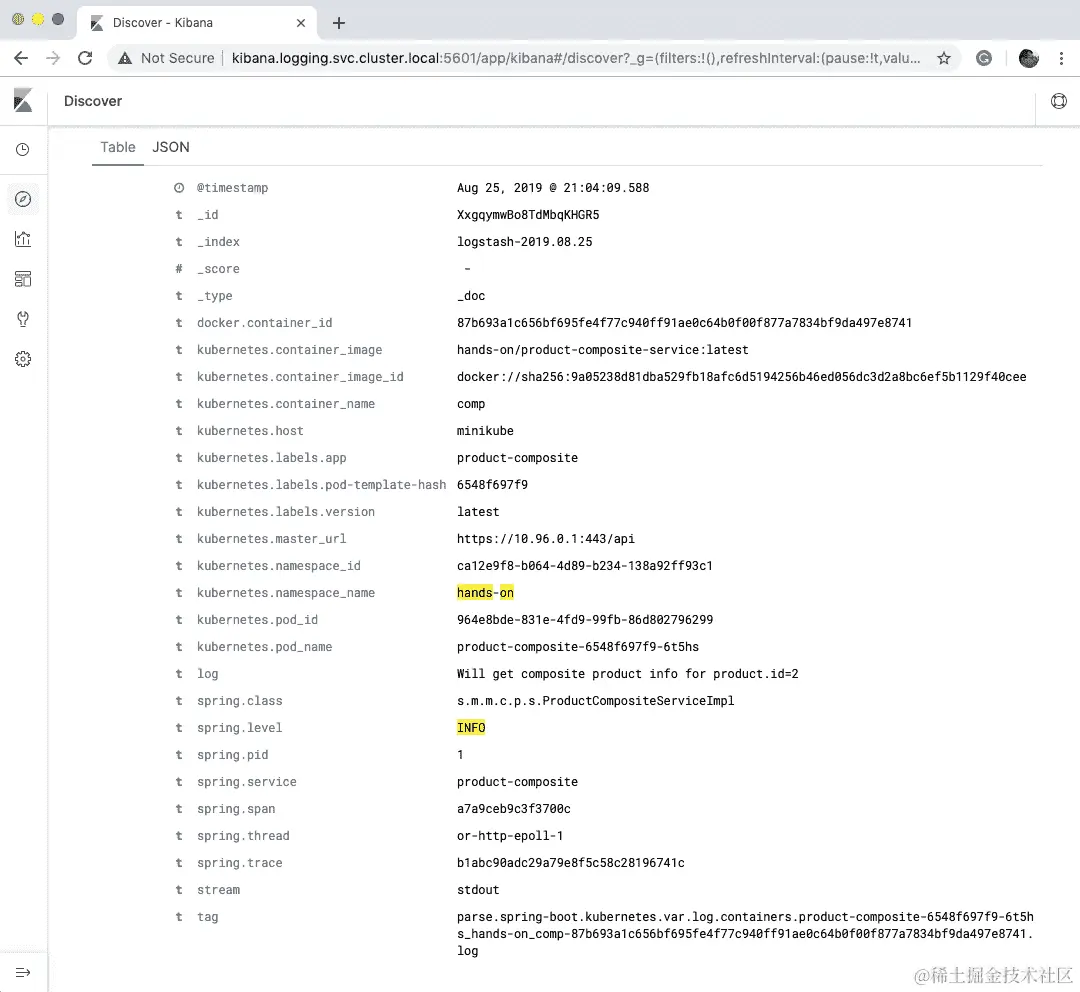 hands-on命名空间的日志记录(除了来自istio-proxy的日志记录)的标签都加上spring-boot前缀。 -