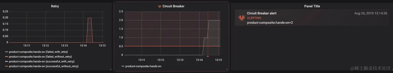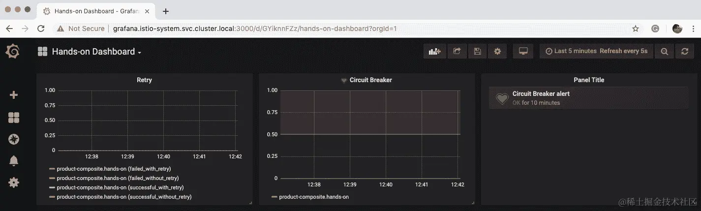 在某些罕见的情况下,我注意到断路器指标没有在 Grafana 中报告。如果它们在一分钟后没有出现,简单地重新运行前面的命令重新打开断路器。