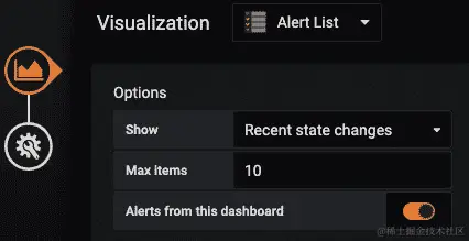 在提供的可视化中,选择“警报列表”。点击它两次以显示选项列表。
