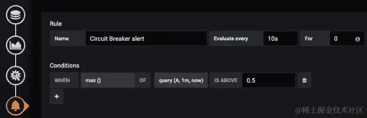 有了通知渠道后,我们就可以定义断路器上的警报了。