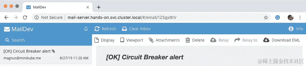 - 在测试邮件服务器上,您应该看到一个电子邮件,如下面的屏幕截图所示: