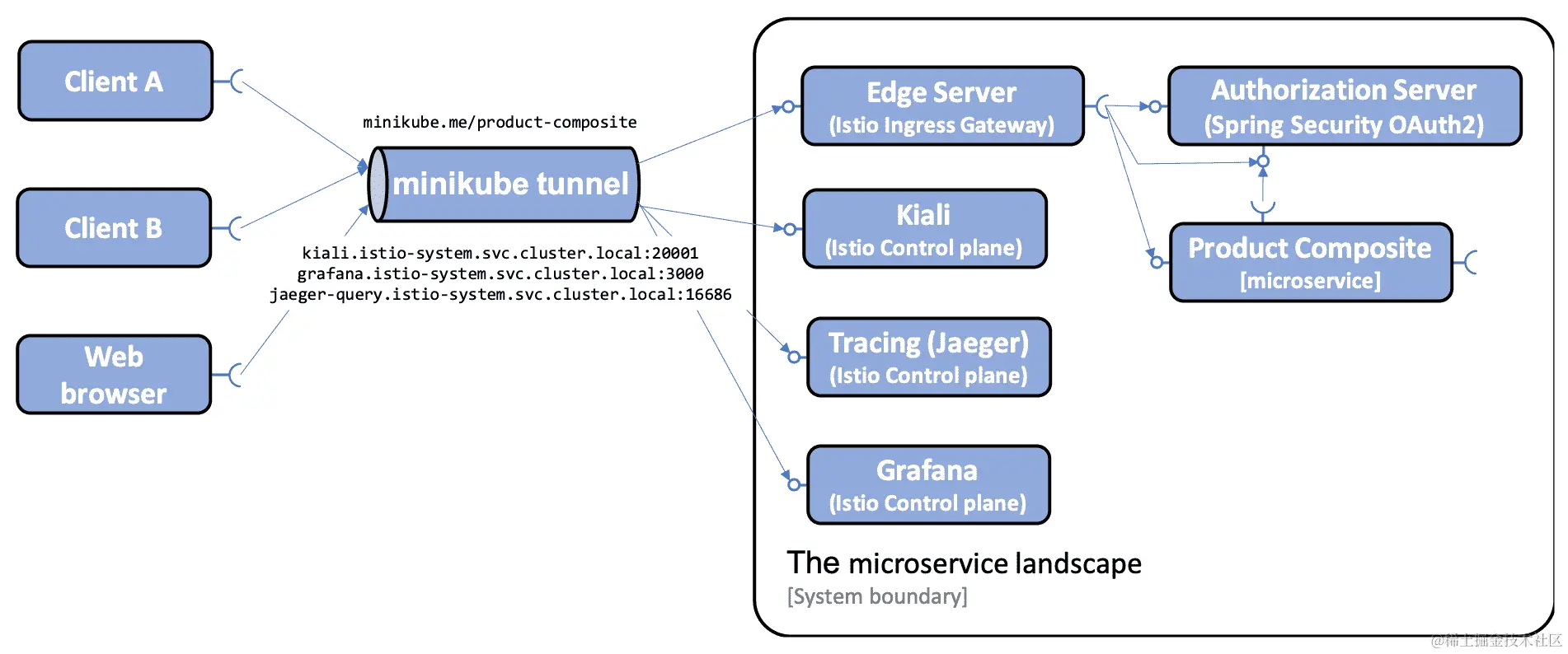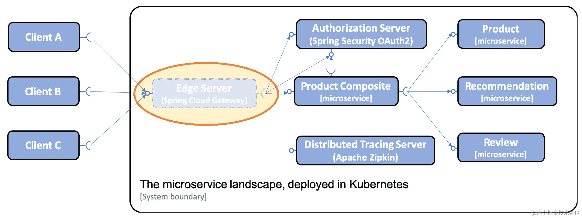我们还使用 Spring Cloud Gateway 保护我们的微服务免受未经验证的请求;也就是说,微服务需要一个来自可信 OAuth 授权服务器或 OIDC 提供者的有效 OAuth 2.0/OIDC 访问令牌。如果需要回顾,请参见第十一章,保护 API 访问。通常,Kubernetes 入口资源不支持这一点。然而,入口控制器的特定实现可能会支持它。