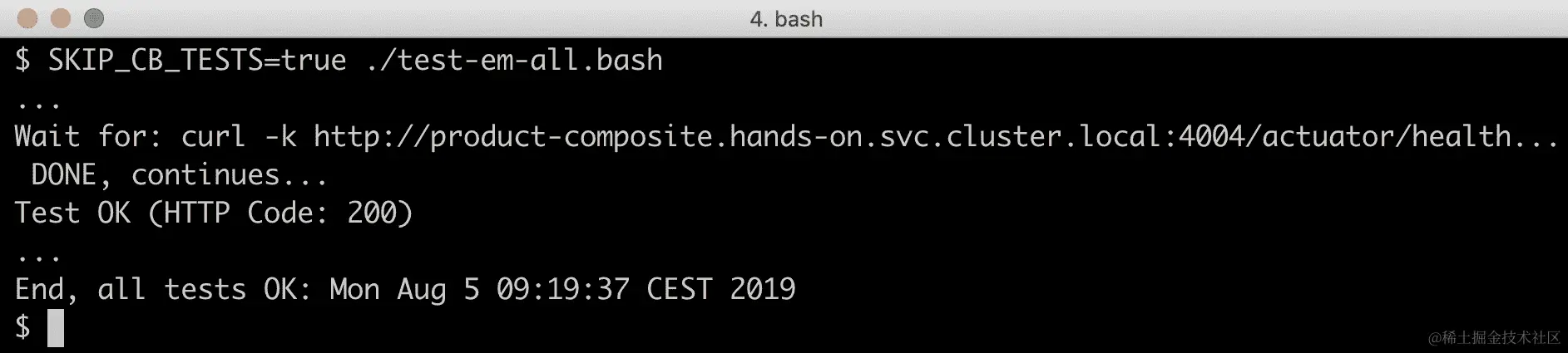 由于我们现在为每个微服务运行了两个 pod(V1 和 V2 版本),因此电路测试不再工作。 这是因为测试脚本无法控制它通过 Kubernetes 服务与哪个 pod 进行通信。 测试脚本通过 product-composite 微服务的 actuator 端口 4004 查询电路 breaker 的状态。 此端口不由 Istio 管理,因此其路由规则不适用。 测试脚本因此不知道它是在检查 product-composite 微服务的 V1 或 V2 版本的电路 breaker 状态。 我们可以通过使用 SKIP_CB_TESTS=true 标志来跳过电路测试。