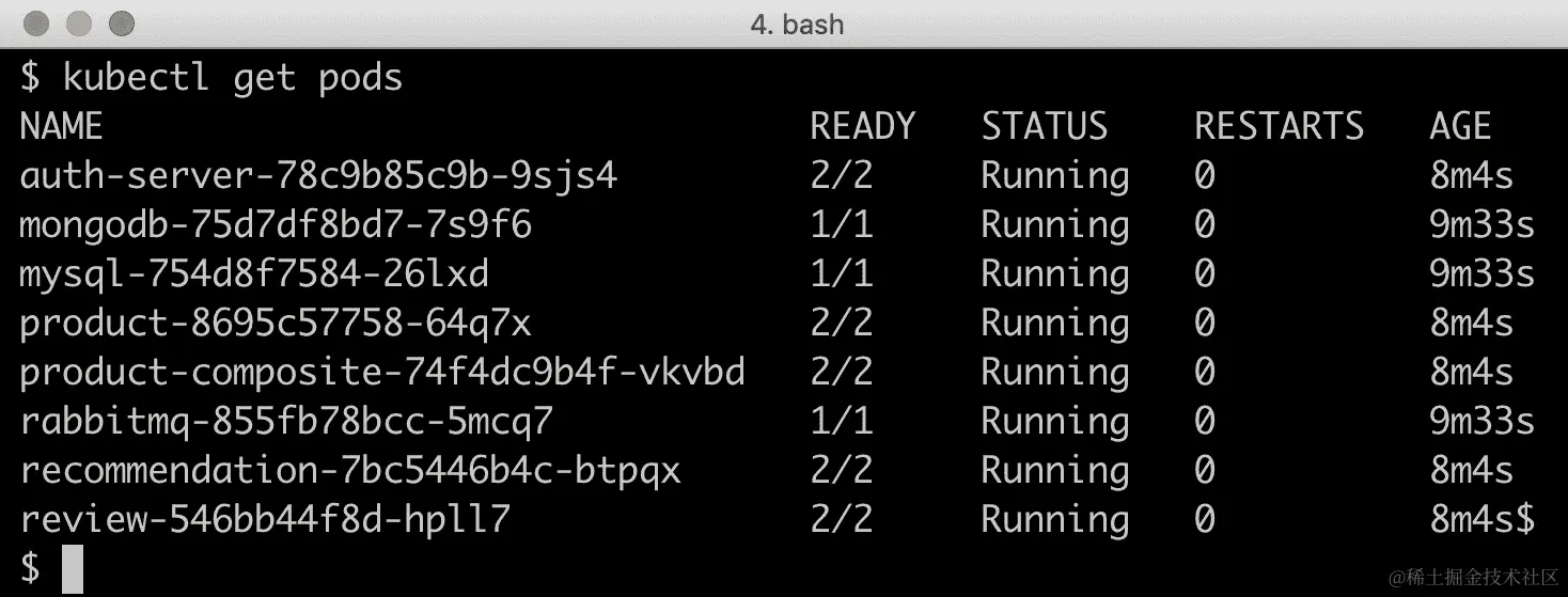 该命令需要几分钟时间,最终应如下列出所有 v1 或 v2 版本的 pod: