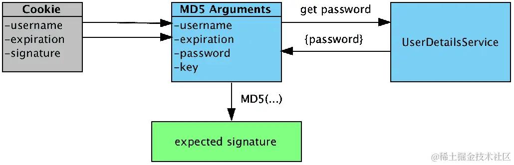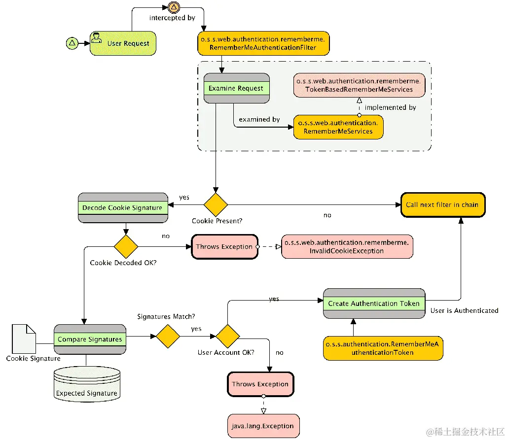 以下图表说明了验证基于令牌的 remember-me 令牌过程中涉及的不同组件: