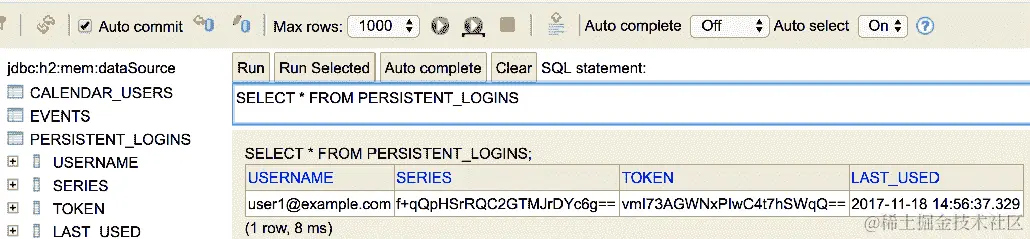 需要注意的是,为了使用RequestContextHolder,你需要确保你已经设置了你的web.xml文件以使用RequestContextListener。我们已经为我们的示例代码完成了这个设置。然而,这在使用示例代码的外部应用程序中可能很有用。参考IpAwarePersistentTokenRepository的 Javadoc,了解如何进行此设置的详细信息。