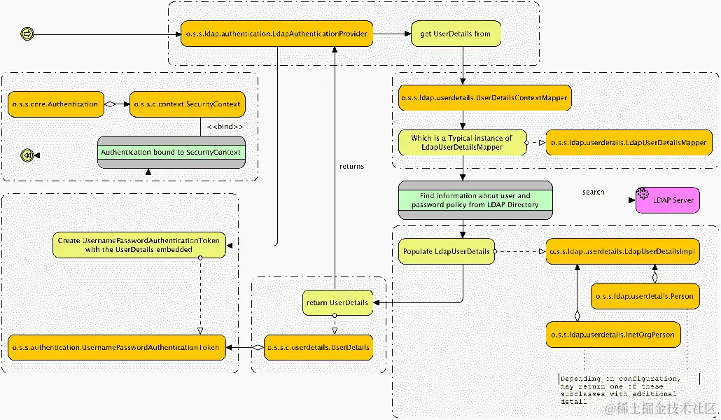 我们已经介绍了TokenBasedRememberMeServices和PersistentTokenBasedRememberMeServices的基本架构,但我们还没有描述总体架构。让我们看看所有 remember-me 部件是如何组合在一起的。