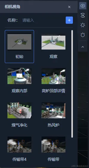 相机视角提供了保存当前相机视角位置以及快速切换相机至对应视角的功能,同时在交互事件中可以监听视角切换以及执行切换视角动作。