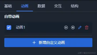 无论是场景还是模型,它们都属于编辑器可操作对象,都可以配置动画。动画分为自定义动画和自带动画,自定义动画指在编辑器中为操作对象配置的动画,自带动画指在建模时为模型设置的动画。自定义动画可以配置循环模式、动画速率以及修改动画帧,自带动画则无法修改动画帧。