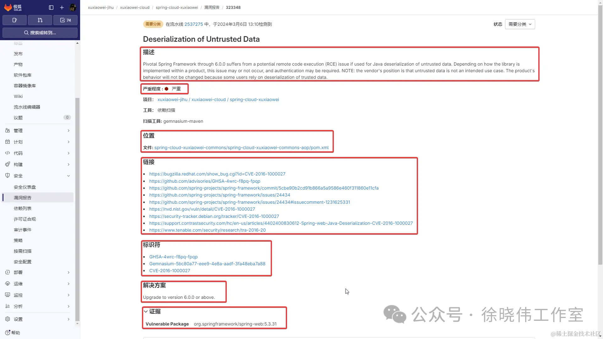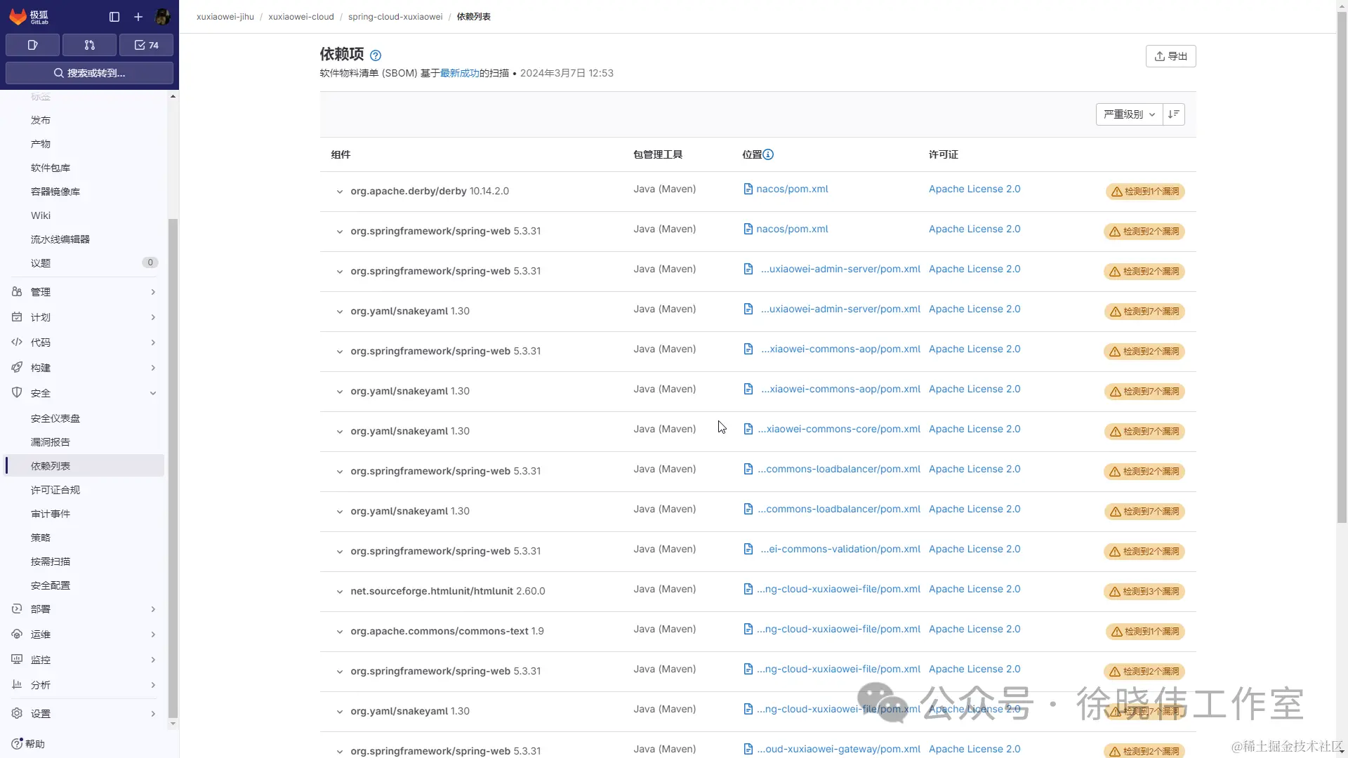 本人使用 极狐 GitLab 扫描项目依赖,查看依赖漏洞。