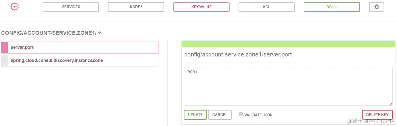 我假设您还记得我们在第四章《服务发现》中关于 Eureka 的分区机制的讨论。当主机位于不同位置时,它很有用,您希望实例在同一区域之间进行通信。Spring Cloud Consul 的官方文档(cloud.spring.io/spring-cloud-static/spring-cloud-consul/1.2.3.RELEASE/single/spring-cloud-consul.html)没有提到这种解决方案,幸运的是这意味着它没有实现。Spring Cloud 提供了一个基于 Consul 标签的分区机制。应用程序的默认区域可以通过spring.cloud.consul.discovery.instanceZone属性进行配置。它设置了在spring.cloud.consul.discovery.defaultZoneMetadataName属性中配置的标签,并传递给传入的值。默认的元数据标签名是zone。