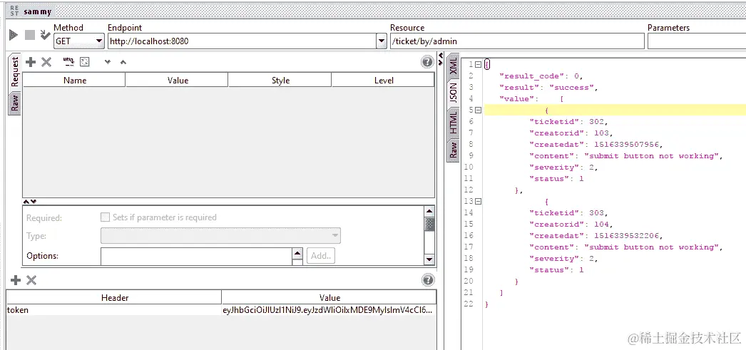 当我们检查 SoapUI 的截图时,我们可以清楚地看到客户创建的两张工单。