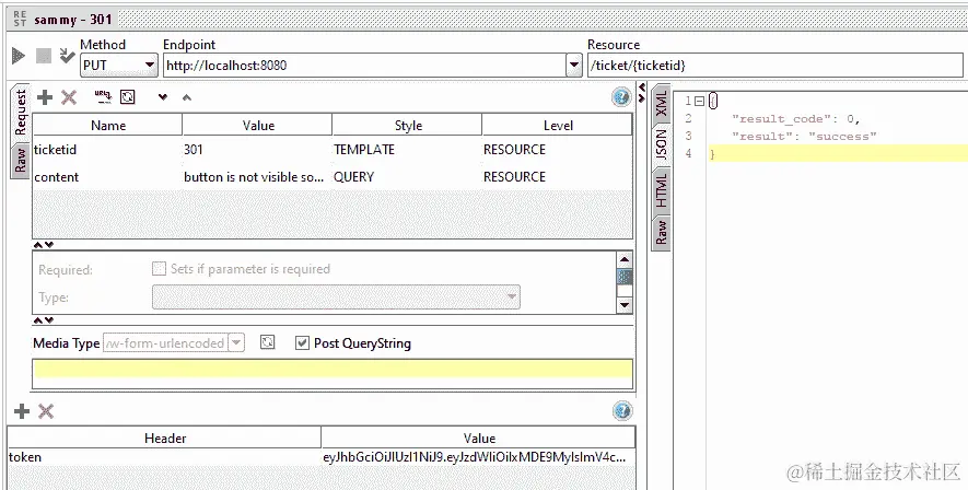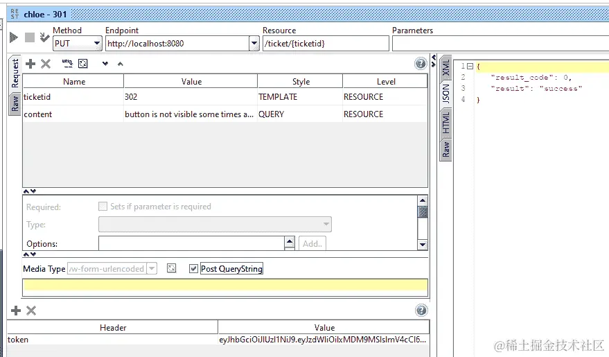 一旦更新过程完成,我们将返回结果"success"作为响应,你可以在截图中检查到: