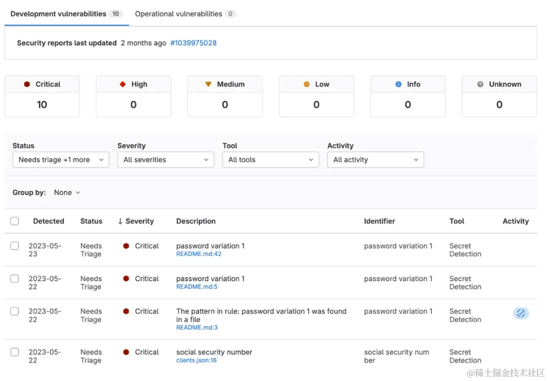 这些漏洞也是可操作的,这意味着它们可以被忽略,也可以创建机密议题。