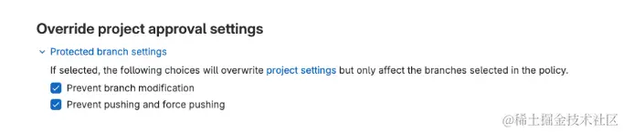覆盖项目审批设置:如果选择,以下选项将覆盖项目设置,但仅影响策略中选择的分支