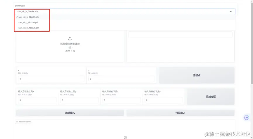 运行起来后,我们通过 API 访问,就可以进入这个可交互网站了,它会根据鼠标的位置分割对应的图片。