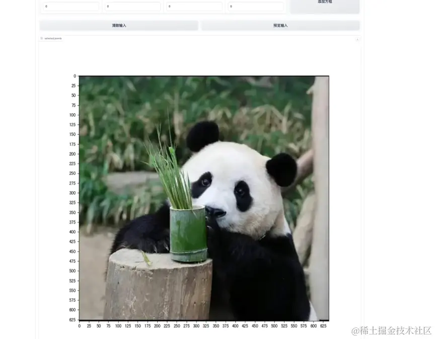 我们用一张熊猫的图片作为例子,上传后,点击「预览输入」,即可看见图片对应的坐标。