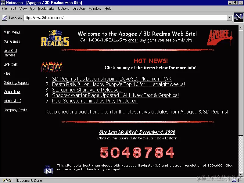我们可以在 1996 年 3drealms 的网站中看到这一点,它展示了设计师们用来添加到他们的网站中的所有花哨的元素:
