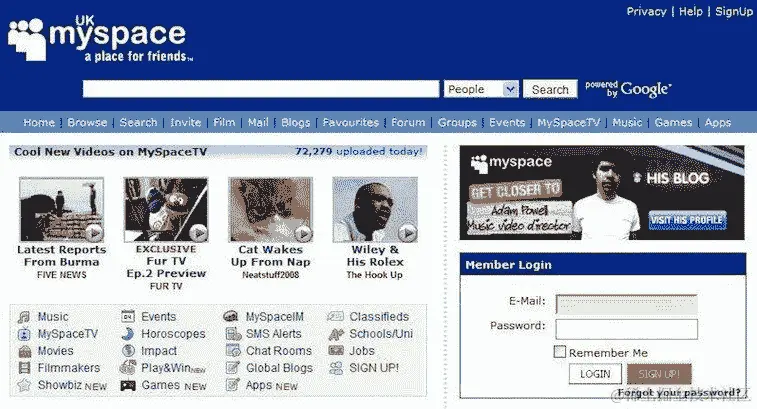 我们可以看到设计上的差异。布局和内容更加结构化。随着MySpace网站,开发者开始为人们创建应用程序进行互动: