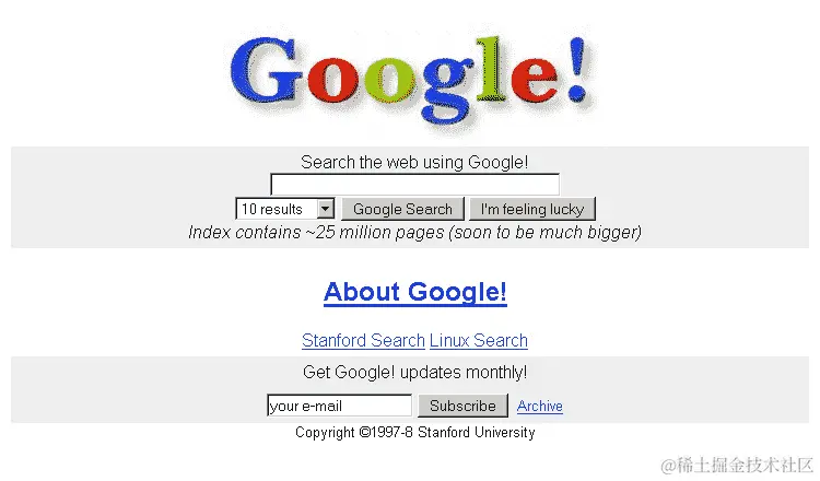 以下截图显示了 1996 年谷歌网页的外观: