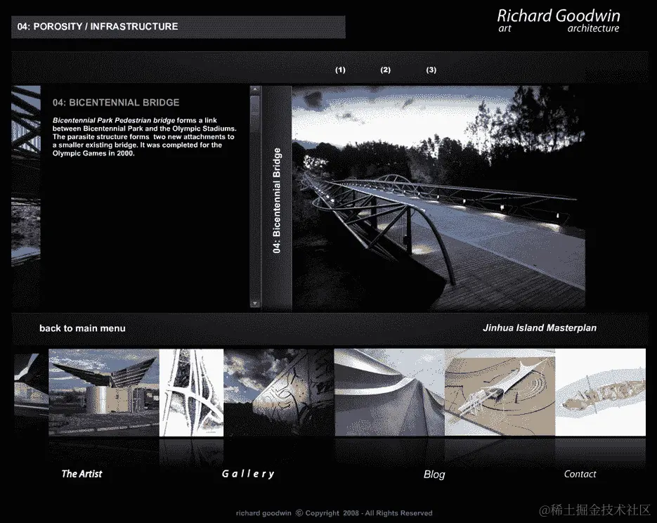 以下是一些 Flash 网站的例子。这个截图显示了一个非常基本的 Flash 网站,使用了滑块、动画和交互。你可以在www.richard-goodwin.com/flash/indexn.html查看这个网站。